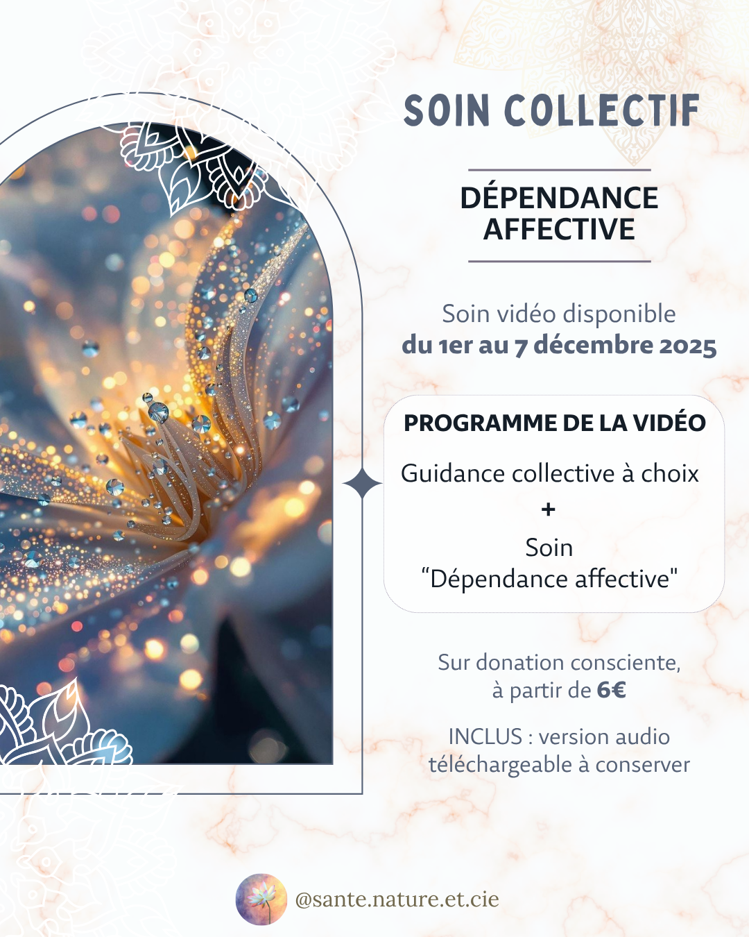 Je publie tous les jours des conseils, outils, pratiques et guidances en lien avec le thème du soin, que ce soit sur facebook et instagram.
